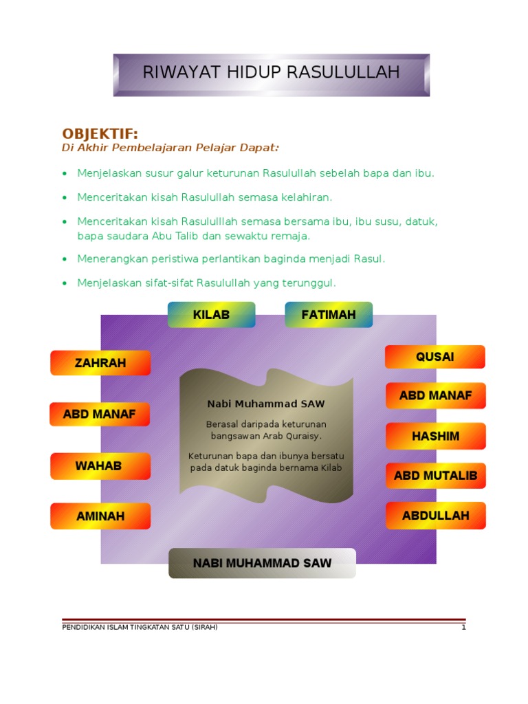 PENDIDIKAN ISLAM TING 1 RIWAYAT HIDUP RASULULLAH SIRAH DRAFT. Setelah kehilangan ayahnya Muhammad kecil disusukan di Bani Saad dan dikembalikan lagi pada ibunya saat ia berusia sekitar empat. RIWAYAT HIDUP RASULULLAH Author.
